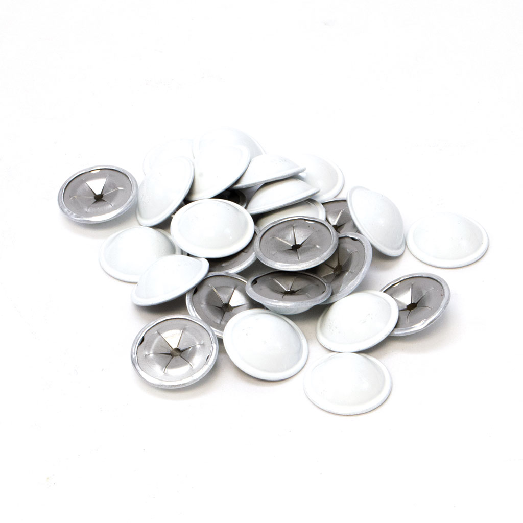 Aluminum insulation dome caps are used in conjunction with weld pins, insulation anchors, lacing anchors or perforated base insulation hangers to cover the sharp pin ends and hold them in place. The finish will often match the insulation material that is being used. Available in white, black or bare aluminum.